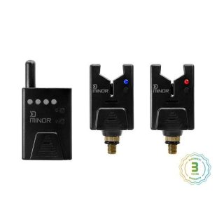 Kompakt és egyedi kapásjelző készlet vevővel; ez a készlet minimális szállítási méretekkel, hosszú élettartamú akkumulátorral rendelkezik és az ára is megfizethető. Még ilyen alacsony áron is összehasonlítható sokkal drágább készletekkel. Ezek a kapásjelzők és a vevőegységük egyaránt nagyon felhasználóbarátak. Ideális körülmények között a jel a kapásjelzők és a vevő között akár 110 méter messzire is elérhet. Az egész készlet kemény műanyag tokban érkezik, ami megvédi jelzőjét szállítás során. Ezenkívül a készlet vízálló, a műanyag pedig ellenáll a mechanikai sérüléseknek. A kapásjelző egy hosszú élettartamú 12V-os 23A típusú elemmel működik. Ki- és bekapcsoláshoz tartsa lenyomva két másodpercig az ON//OFF gombot. Bekapcsolás után a színes LED dióda 3-szor, kikapcsoláskor egyszer villan fel. Amikor a készülék be van kapcsolva, 5 hangerő-beállítás közül választhat egyet, beleértve a néma módot is. A LED dióda minden kapás után 10 másodpercig világít. A vevő fogadja a jelet, és hanggal, fénnyel és (ha ezt az opciót választja) rezgéssel is jelzi. A „V” gombbal válassza ki a 7 hangerő-beállítás egyikét, beleértve a néma módot. A vibrációs mód bekapcsolásához tartsa lenyomva a „V” gombot 2 másodpercig. A vevőben négy színes LED dióda található, amelyek kapás után 10 másodpercig villognak. 3 db 1,5 V-os AAA elemmel működik. A vevő és a kapásjelzők az összes beállítást a memóriájukban tárolják. A vevőegységhez tartozik egy praktikus heveder is. Ez a készlet a következőket tartalmazza: Kapásjelzők 1x vevő 1x szállítótáska 1x szíj a vevőhöz Vevő/jellemzők – 7 különböző hangerő-beállítás, beleértve a néma módot – Rezgőmód – 3 db 1,5 V-os AAA elemmel működik – Kapás után 10 másodpercig villog a LED dióda – A terepviszonyoktól és az akkumulátor állapotától függően akár 110 m hatótávolság – Memória funkció – a beállítások a készülék kikapcsolása után is eltárolhatók a memóriában Kapásjelzők/jellemzők – 5 különböző hangerő-beállítás, beleértve a néma módot – 1 db 23A 12V elemmel működik – Kapás után 10 másodpercig világít a LED dióda – Memória funkció – a beállítások a készülék kikapcsolása után is eltárolhatók a memóriában – Vízálló